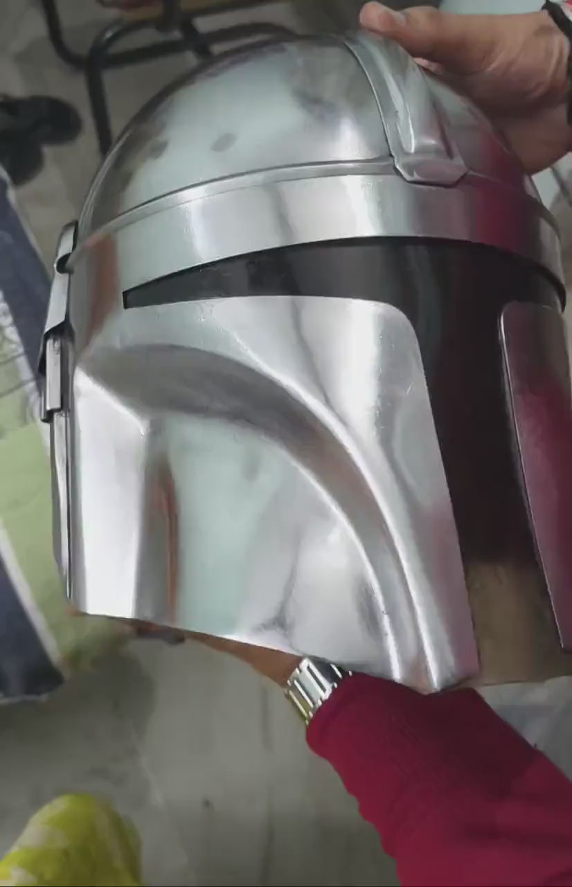 Step into the world of sci-fi legend with this Grey Beskar Mandalorian Helmet, a striking handmade steel cosplay armor helmet crafted for collectors, fans, and costume enthusiasts. Inspired by iconic futuristic warriors, this helmet features a sleek grey Beskar-style finish with a strong, battle-ready aesthetic that stands out in any display or cosplay setup.