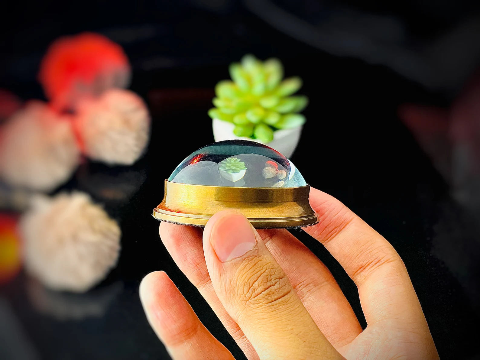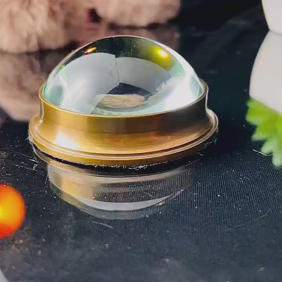 Experience the beauty of precision and design with this brass lenticular compass, featuring a unique floating black dial that creates a stunning three-dimensional, liquid-like effect. Crafted from solid brass and clear glass, this compact compass has a satisfying weight and a refined nautical look.